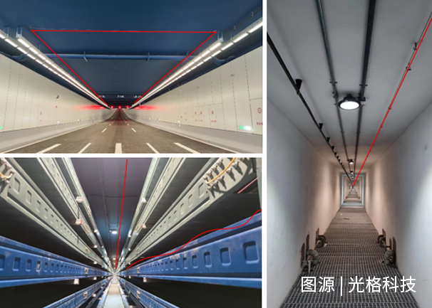 ▲光格感溫光纖隧道現場(chǎng)敷設圖(標紅示意)