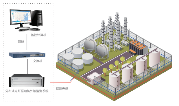 全光纖監測:監測全程采用一根單芯光纖;本質(zhì)安全,防雷防爆。