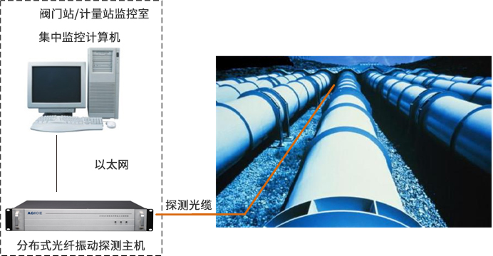 光格油氣管道防盜防外破監測系統由分布式光纖振動(dòng)探測主機及相應的探測光纜組成,對管道的周邊擾動(dòng)信號進(jìn)行連續線(xiàn)型實(shí)時(shí)在線(xiàn)監測,從而監測管道是否有破壞活動(dòng)發(fā)生。